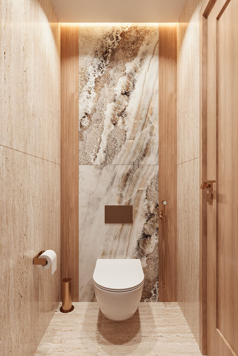 Strata Bath is a common bathroom renovation conceived as a refined and calming interlude within the hotel experience. Rather than drawing from the surrounding landscape, the design focuses on material clarity, light control, and spatial order, transforming a high-use area into a composed and quietly luxurious environment. Warm stone surfaces and natural wood elements establish a tactile, balanced backdrop, while carefully integrated lighting defines depth and proportion without visual excess. Vertical alignments, recessed details, and softly curved mirror forms introduce rhythm and orientation, guiding movement through the space and reinforcing a sense of calm and cleanliness. Fixtures and fittings are selected for durability and ease of maintenance, yet treated as integral design elements rather than purely functional components. Designed to accommodate shared use while preserving a feeling of comfort and dignity, Strata Bath elevates the everyday ritual through restraint and precision. The result is a contemporary hospitality space where material, light, and function are layered with intention, clear, warm, and quietly confident.